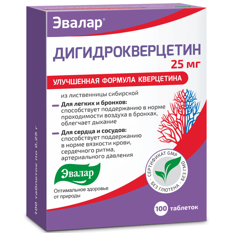 Поэтому принимайте Дигидрокверцетин от Эвалар. В отличие от других, он имеет высокую дозировку дигидрокверцетина – 25 мг, и производится из высококачественного сырья со степенью очистки – 98-100%. Это обеспечивает максимальную активность действующего вещества для поддержания здоровья органов дыхания.