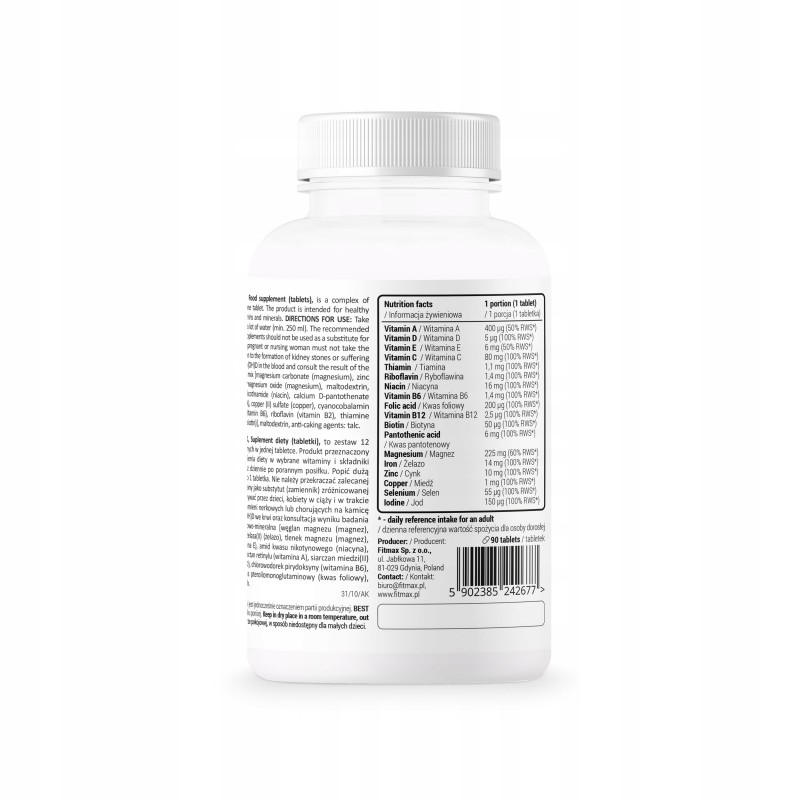 Мультикомплекс FitMax Vita&Min Complex - это уникальная формула, разработанная специально для поддержания общего здоровья и улучшения функций организма. Этот продукт содержит оптимальное сочетание витаминов и минералов, необходимых для поддержания нормального метаболизма, функции иммунной системы, зрения, нервной системы, костей и мышц.