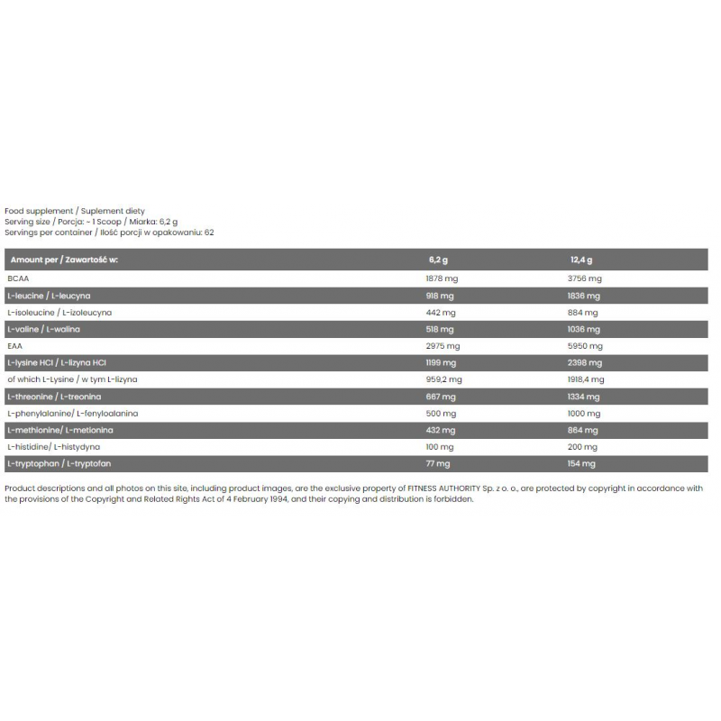 Аминокислотный комплекс FA Beef Amino - это источник незаменимых аминокислот (Essential Amino Acids, EAA) и с разветвленной цепью аминокислот (Branched-Chain Amino Acids, BCAA), которые играют ключевую роль в поддержании мышц, усилении производительности и сокращении времени восстановления.