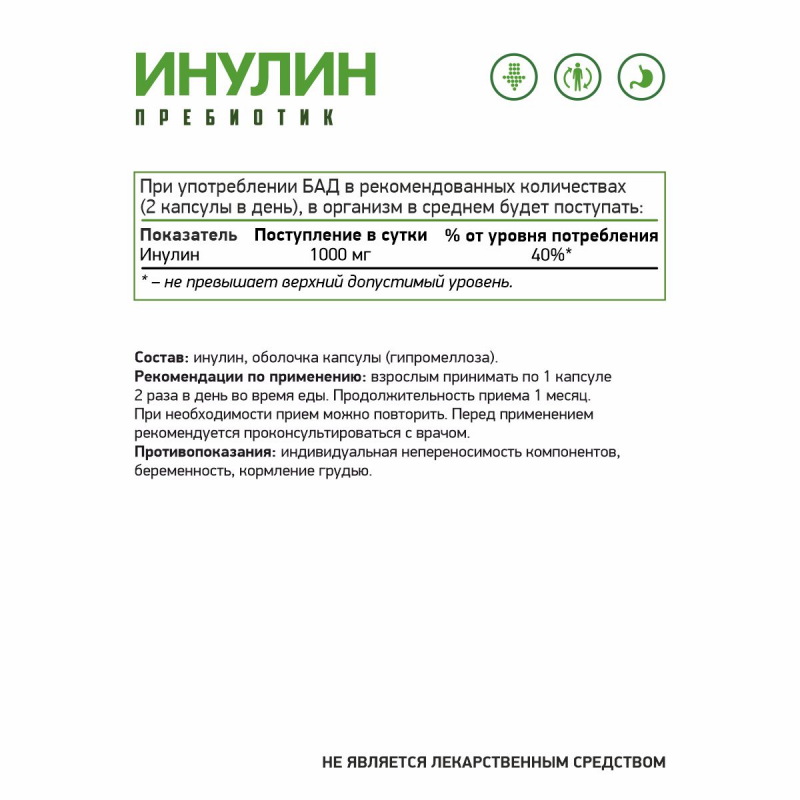 Состав — инулин, оболочка капсулы (гипромеллоза).