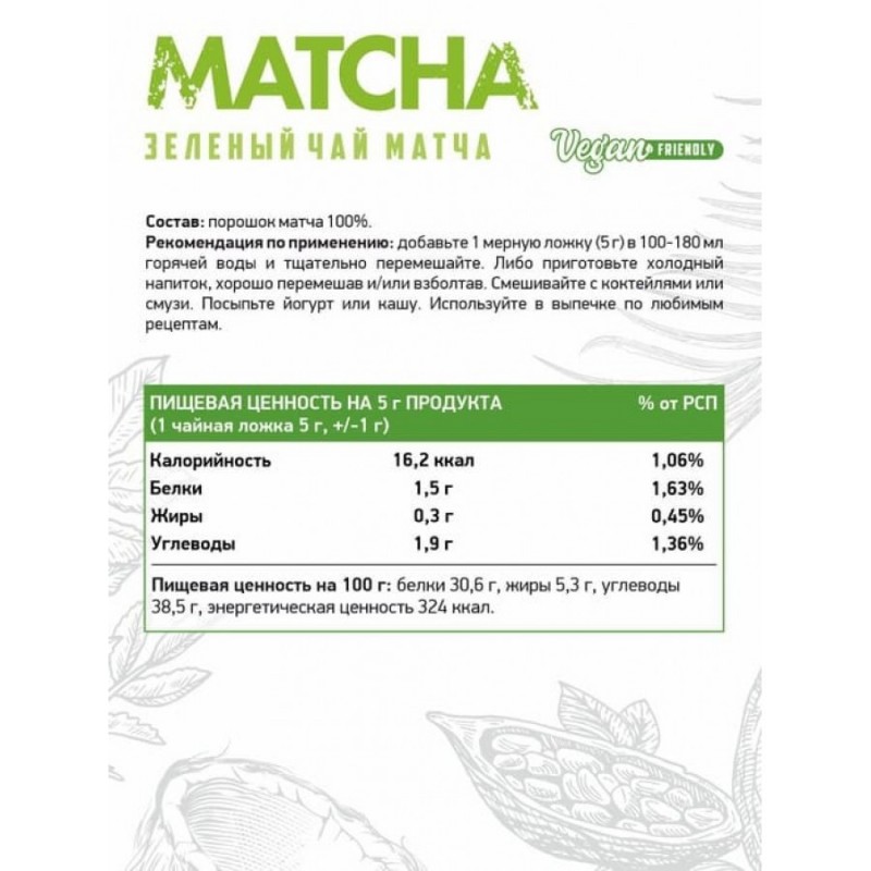 Пищевая ценность на 5 г продукта (1 мерная ложка):