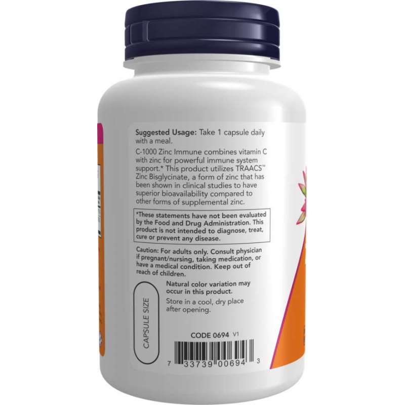 Витамин C-1000 с цинком Now Foods сочетает в себе витамин C и цинк для мощной поддержки иммунной системы. В этом продукте используется бисглицинат цинка TRAACS™ — форма цинка, которая, как показали клинические исследования, обладает более высокой биодоступностью по сравнению с другими формами добавок цинка.