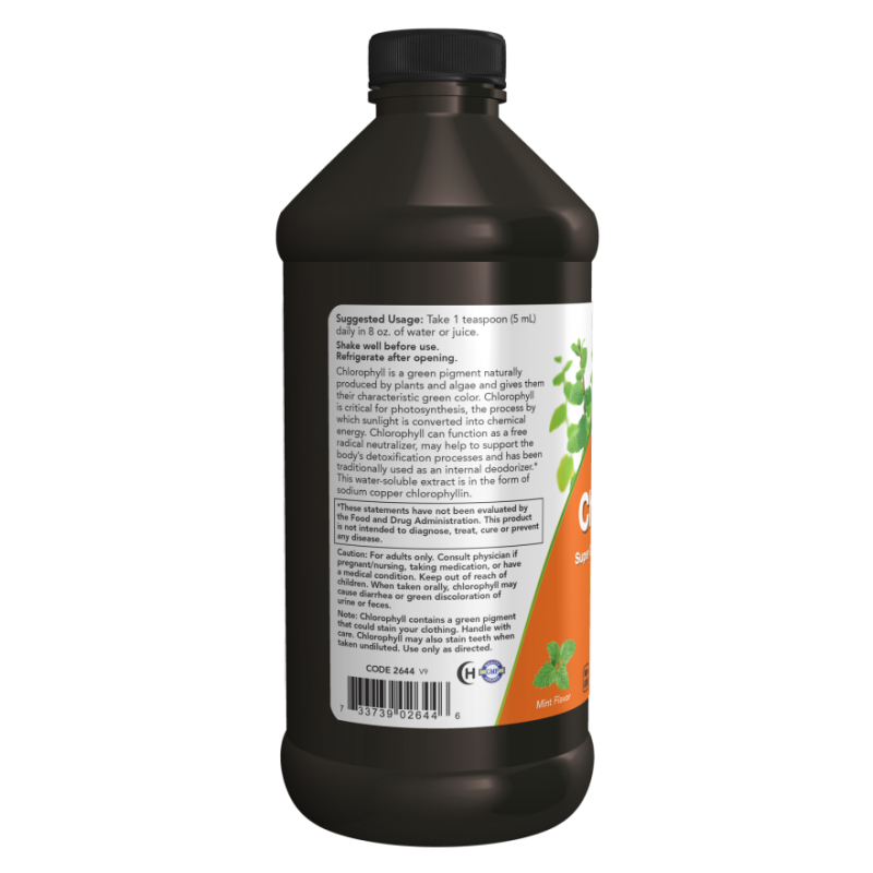 Примечание. Хлорофилл содержит зеленый пигмент, который может испачкать одежду. Обращаться осторожно. Хлорофилл также может окрасить зубы, если принимать его в неразбавленном виде. Использовать только по назначению.