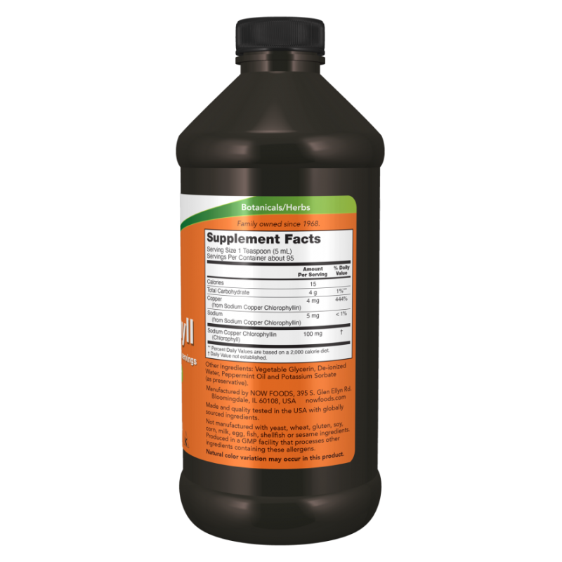 Жидкий Хлорофилл от NOW - суперконцентрированный, более 90 порций. Он очищает и освежает дыхание благодаря натуральному мятному вкусу.