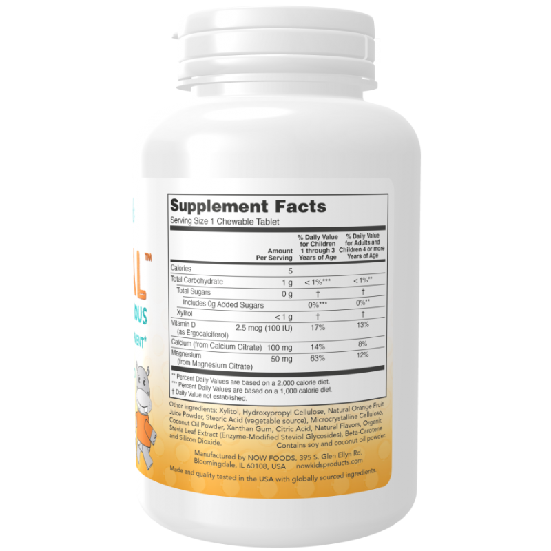 Жевательные таблетки для детей с кальцием NOW® — это вкусные жевательные пастилки, которые понравятся детям, а также обеспечат им необходимые кальций, магний и витамин D. Детский витаминный кальций рекомендуется к применению: