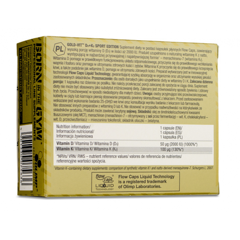 Gold Vit D3 + K2 SPORT EDITION предназначен для дополнения высокими дозами витаминов ежедневного питания людей, занимающихся спортом. Физически активные люди, которые подвергаются огромным энергозатратам в виде интенсивных тренировок несколько раз в неделю, демонстрируют повышенную потребность в макро- и микроэлементах.