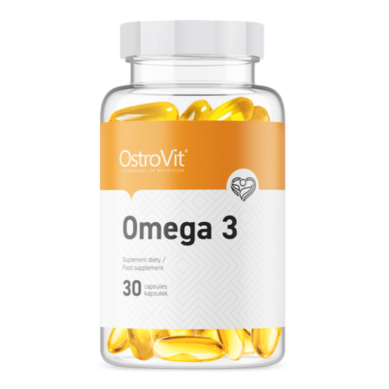 OstroVit Омега 3 высококачественная пищевая добавка на основе рыбьего жира как источника полиненасыщенных жирных кислот омега-3. Она содержит такие ценные соединения, как эйкозапентаеновая кислота ( EPA) и докозагексаеновая кислота (DHA), и выпускается в форме легко глотаемых капсул с софгелем.