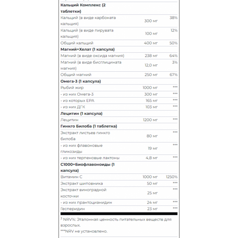 В Multi Pro Plus добавлены гелевые капсулы Омега-3 и лецитина, коэнзим Q10, богатый полифенолом экстракт виноградной косточки, а также усилен лютеином.