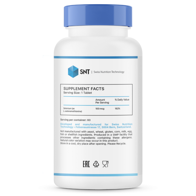 Selenium 100mcg содержит наиболее усваиваемую человеком форму органически связанного селена, который необходим прежде всего для защиты организма от свободных радикалов и предотвращения повреждающего действия реакций перекисного окисления липидов (ПОЛ).