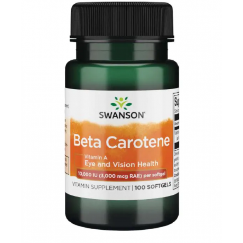 Получите здоровую дозу незаменимого витамина А с бета-каротином Swanson! Этот растительный пигмент способствует здоровью глаз и кожи, а также общему самочувствию. Он также действует как мощный антиоксидант. Каждая капсула содержит 10 000 МЕ бета-каротина.