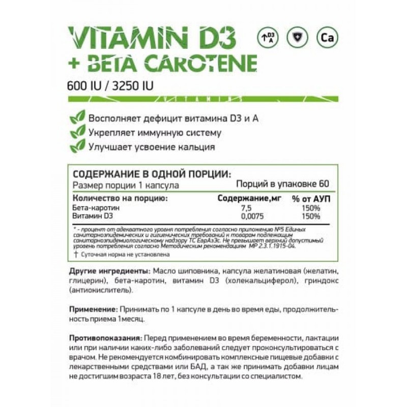 Новый ультраполезный комплекс для защиты здоровья и прекрасного самочувствия в любом возрасте – Витамин D3 + Бета-каротин + Масло шиповника от NaturalSupp.